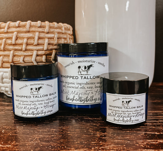 Our Whipped Tallow Balms nourishes and supports healthy, balanced skin by offering a range of benefits for skin health due to the natural compatibility with the human skin barrier. (making it highly moisturizing and easily absorbed without clogging pores.)